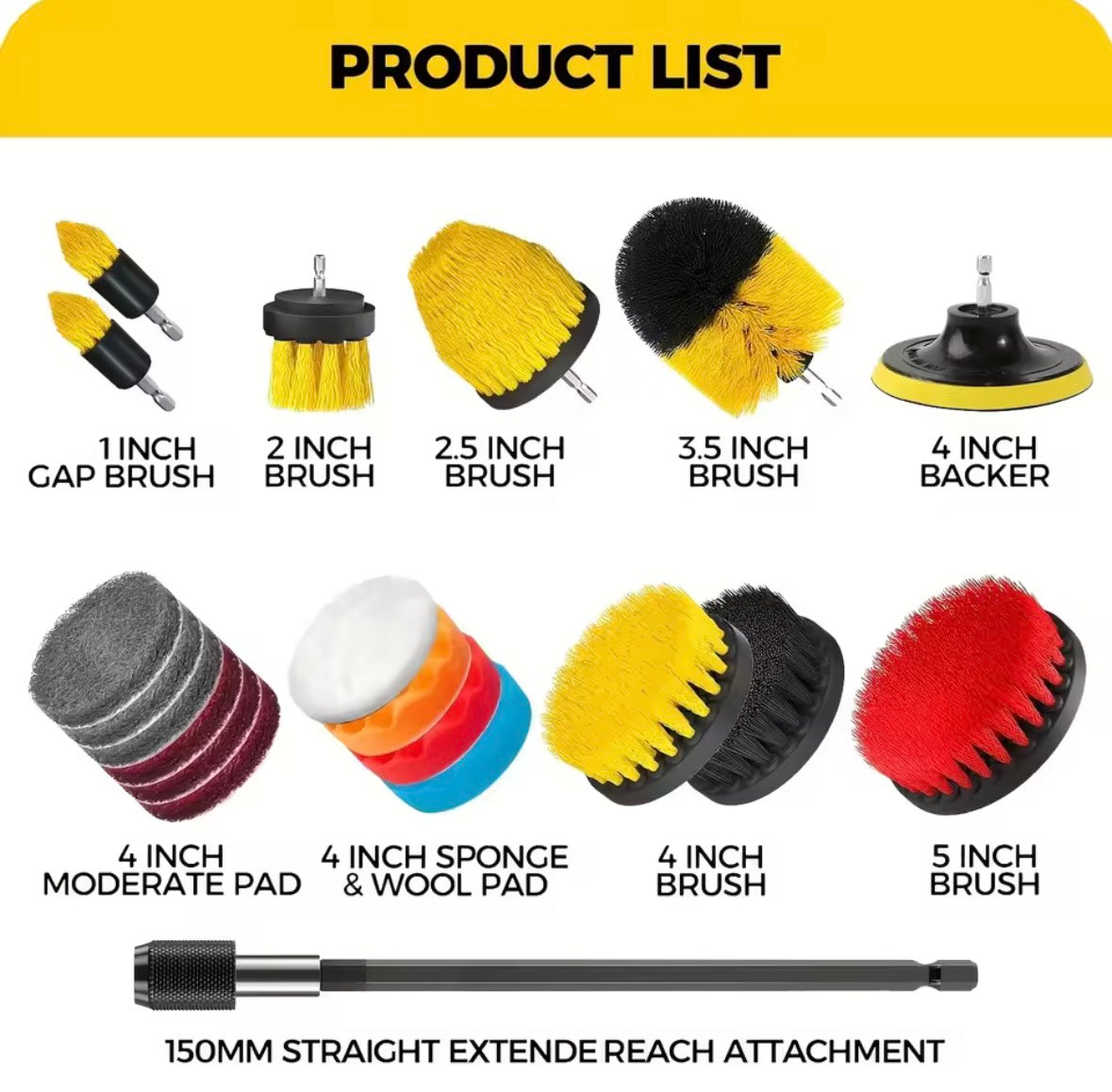 Ensemble de fixation de brosse de forage 7 pièces, Kit d'outils de brosse de nettoyage, brosse de forage polyvalente avec rallonge pour sol, automobile